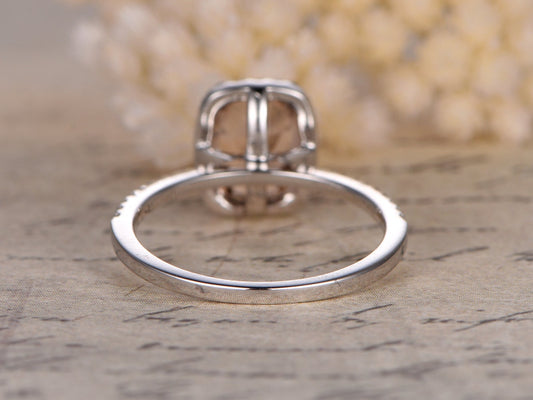 6x8mm Oval Cut Morganite Engagement Ring 14K White Gold Diamond Halo Half Eternity