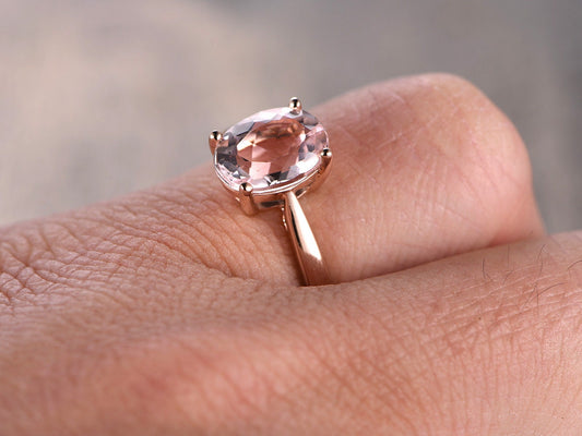 7x9mm Oval Cut Morganite Engagement Ring 14K Rose Gold Solitaire Plain Band